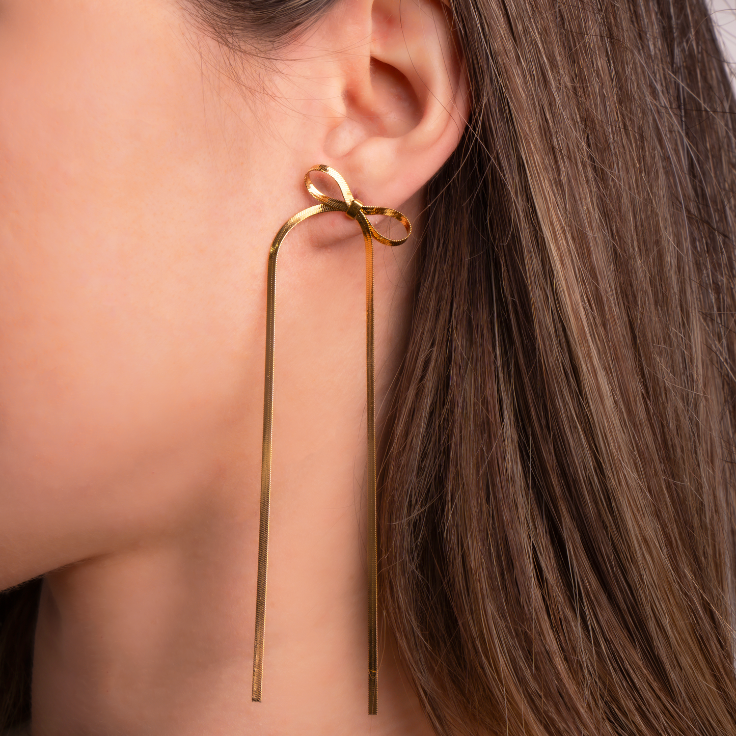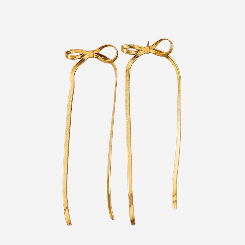 Añadir Aretes moños largos dorados al carrito