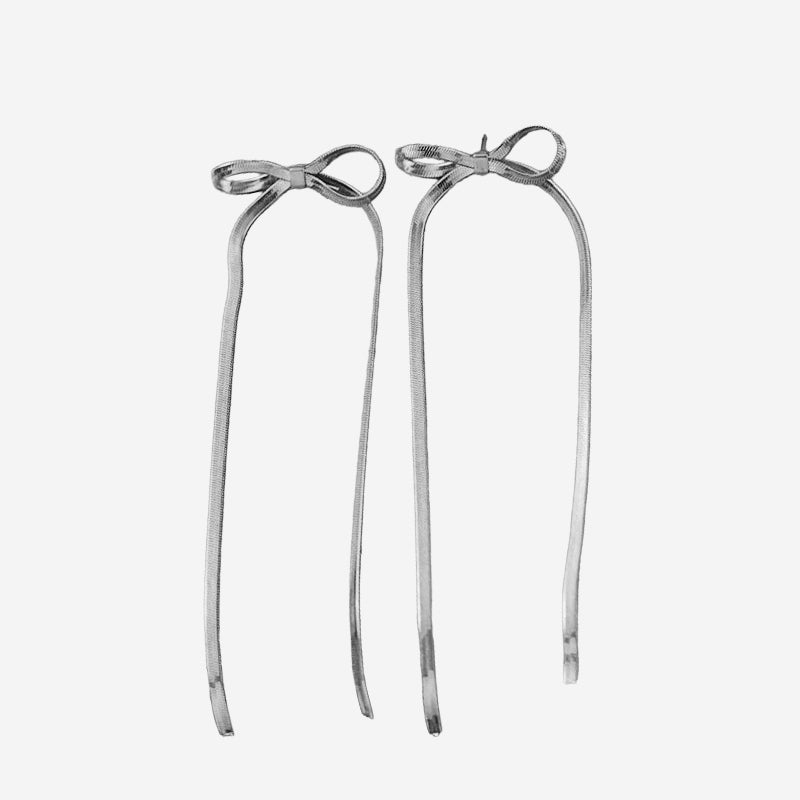 Añadir Aretes moños largos plateados al carrito