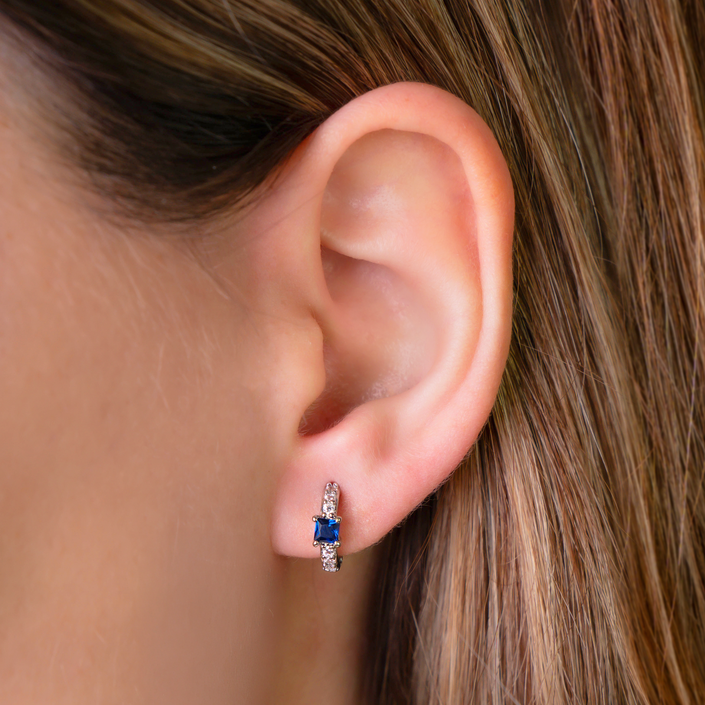 Añadir Arracadas mini plateadas con circonia azul al carrito