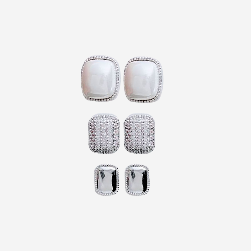 Añadir Set aretes plateados cuadros al carrito