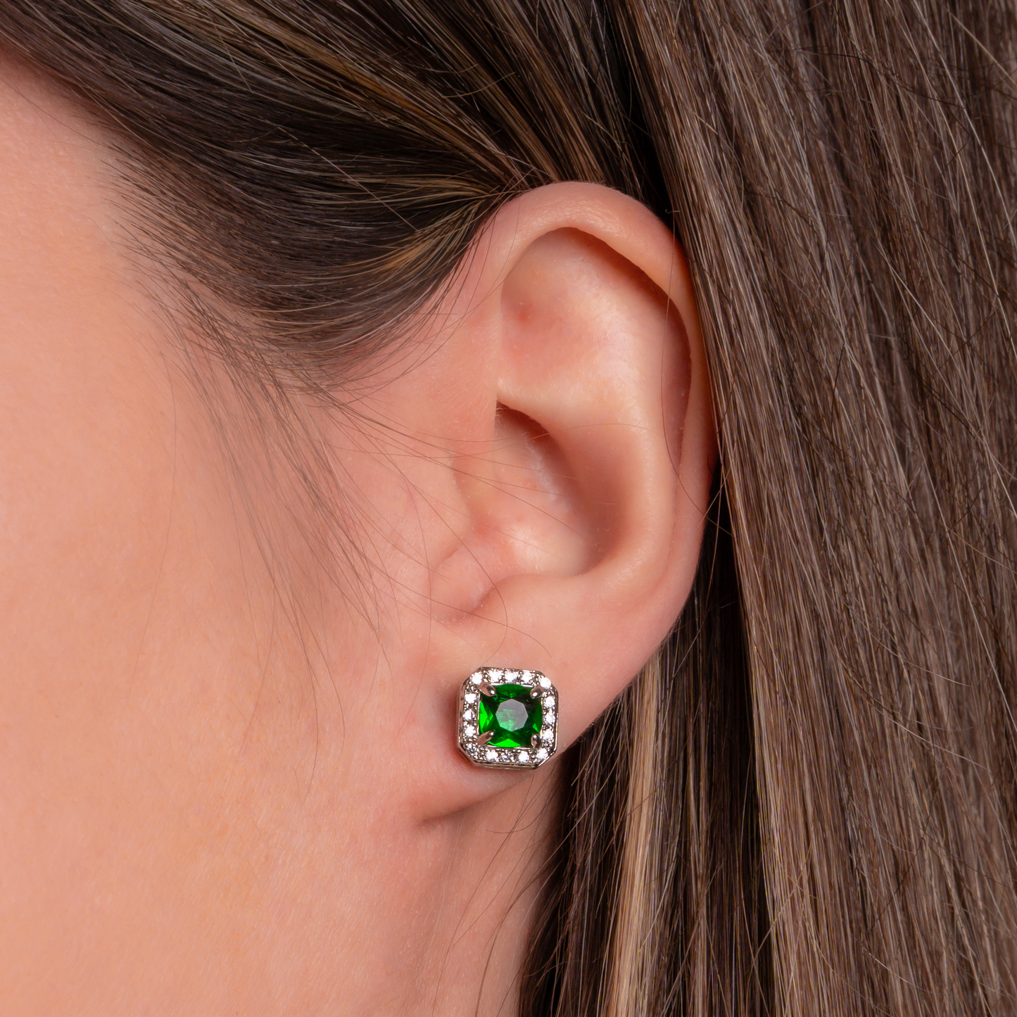 Añadir Aretes circonia plateados cuadrados al carrito